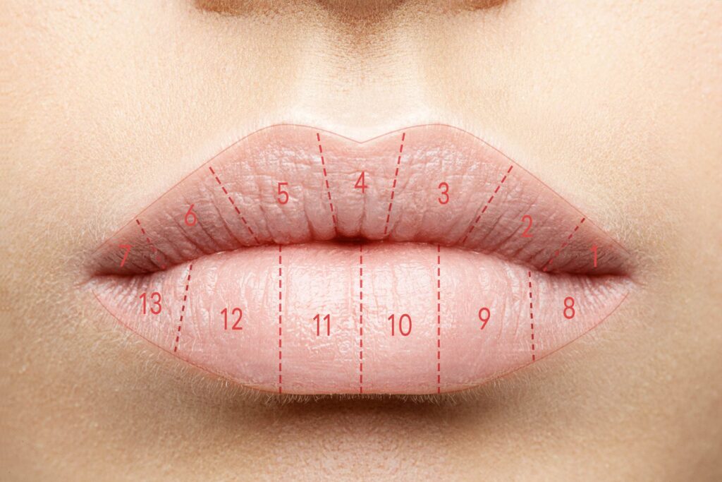 - Teile die Lippen in einzelne Sektionen von ca. 1-1,5 cm ein. Das kannst du visuell machen oder mit Strichmarkierungen außerhalb der Lippenform.
